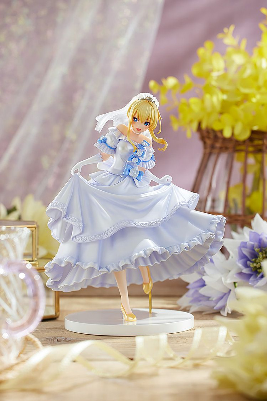 - Elegant Design: Standing at approximately 17 cm tall, this figure features Darkness in a stunning wedding dress, preparing to twirl and showcase her gown. Her blushing expression and poised stance capture her endearing and complex personality.