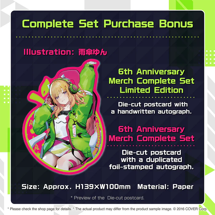 The 6th Anniversary Merch Complete Set offers fans a chance to own a beautifully curated collection of Aki Rosenthal’s anniversary merchandise. This set is similar to the limited edition but includes a bonus postcard with a duplicated foil-stamped autograph.