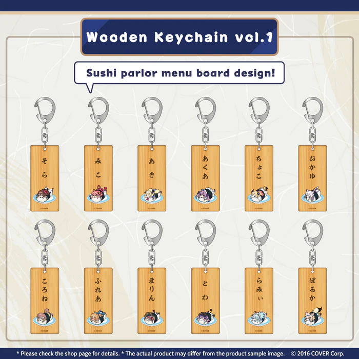 No collection is complete without some keychains, and we have you covered with our holoSushi Acrylic and Wooden Keychains. These delightful accessories feature intricate sushi designs that will leave you craving both art and appetite. Choose from a variety of designs and sizes, each meticulously crafted with high-quality materials. Whether you opt for the acrylic or wooden keychains, they are sure to add a dash of holoSushi charm to your keys or bags. 🍱