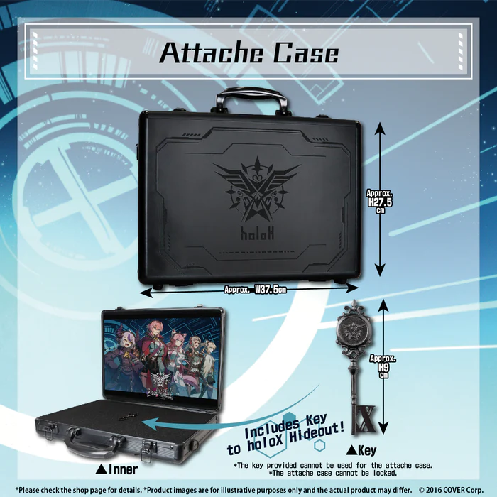 Carry your belongings in style with this sleek attache case adorned with artwork by 黒井ススム. It's not just a case; it's a statement of your holoX fandom. Keep your secrets safe in this exclusive item.