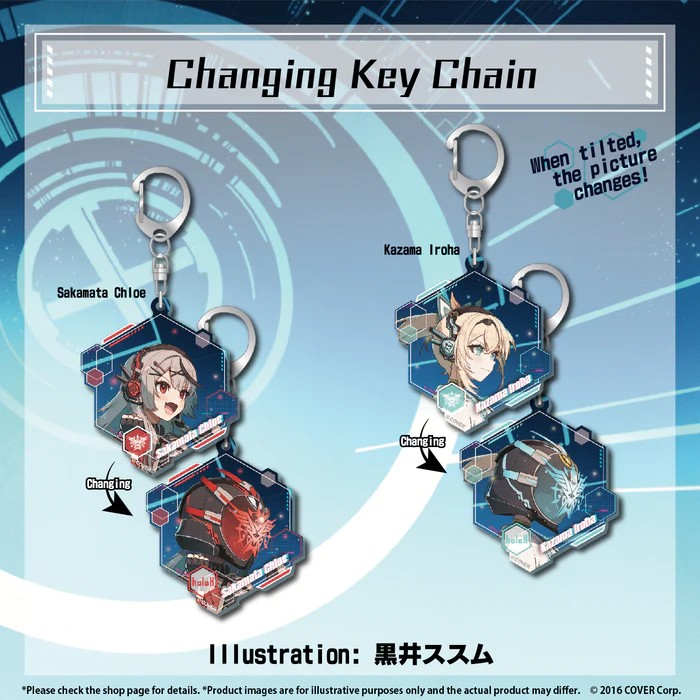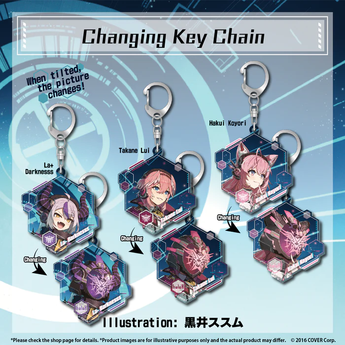 This enchanting key chain features artwork by 黒井ススム and is perfect for holoX fans on the go. Watch the design change as you move it, adding a touch of whimsy to your daily life.