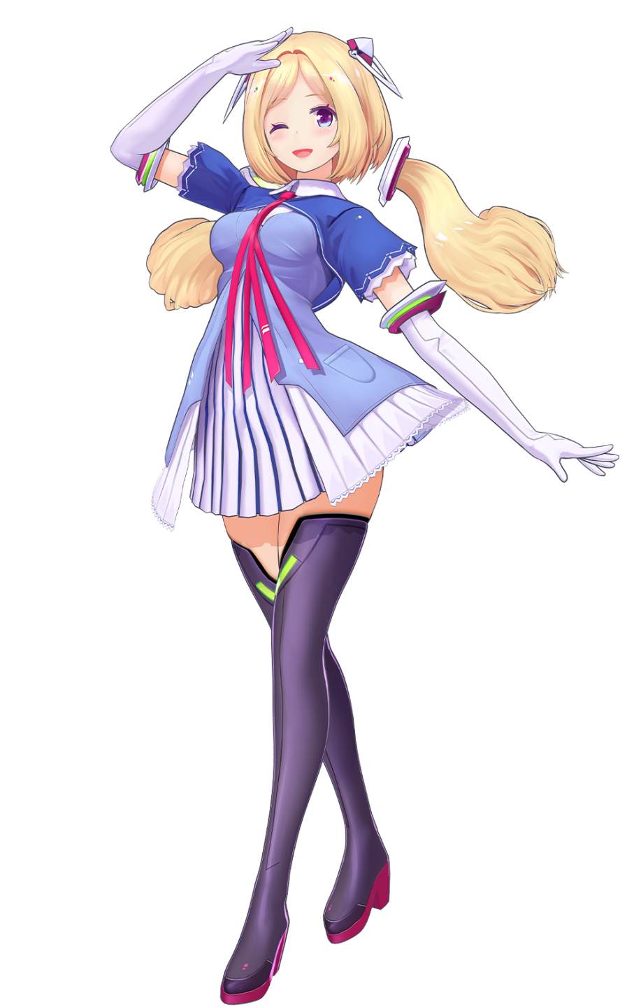👁️ Appearance 👁️ Aki's appearance is a fusion of futuristic aesthetics and classic charm. Her signature feature, the floating twintails, emerge from different devices, adorning her with a unique allure. Her outfits are a blend of white, violet, and green with a touch of blue, exuding an otherworldly vibe.