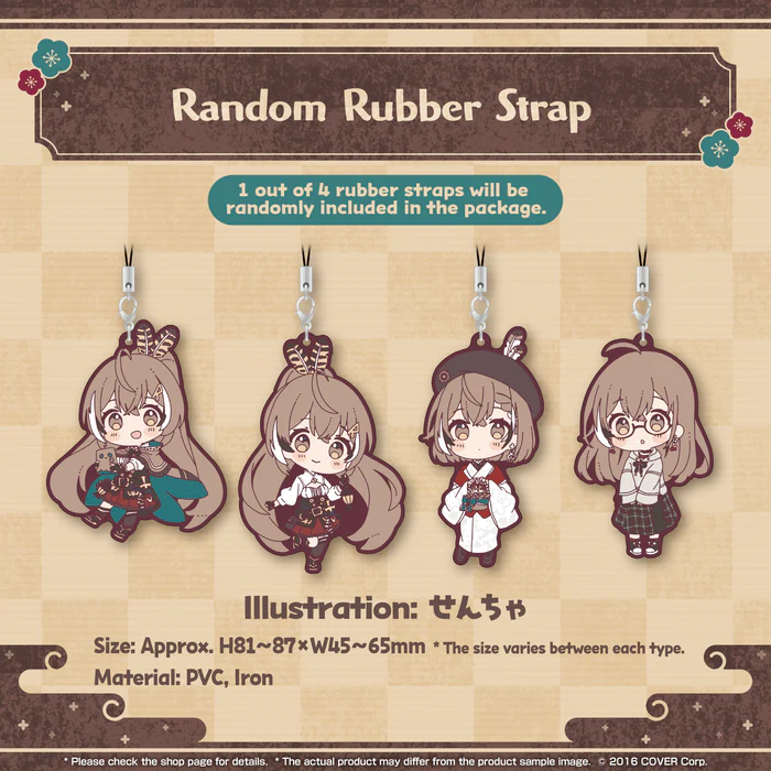 Add a touch of Mumei magic to your everyday items with a Random Rubber Strap. With four different designs to collect, each strap is a miniature masterpiece. Measuring approximately H81-87×W45-65mm and made of PVC and iron, these straps are perfect for personalizing bags, keys, or any personal belongings. Remember, the design you receive is a surprise, making each purchase a unique thrill!