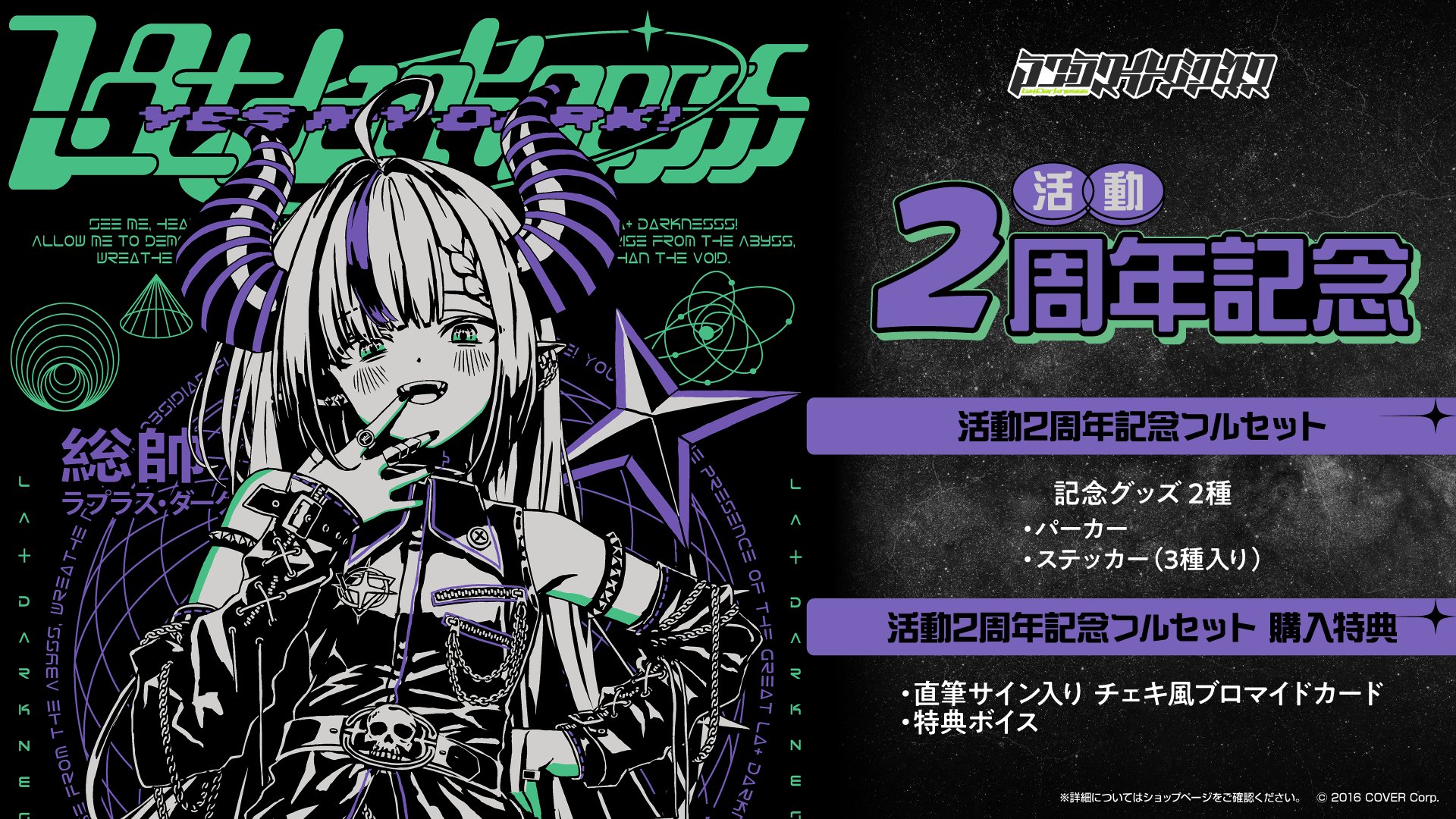 Don't miss out on La+ Darknesss's latest 2nd-anniversary merchandise! Pre-order now and celebrate this enigmatic Virtual YouTuber's journey.