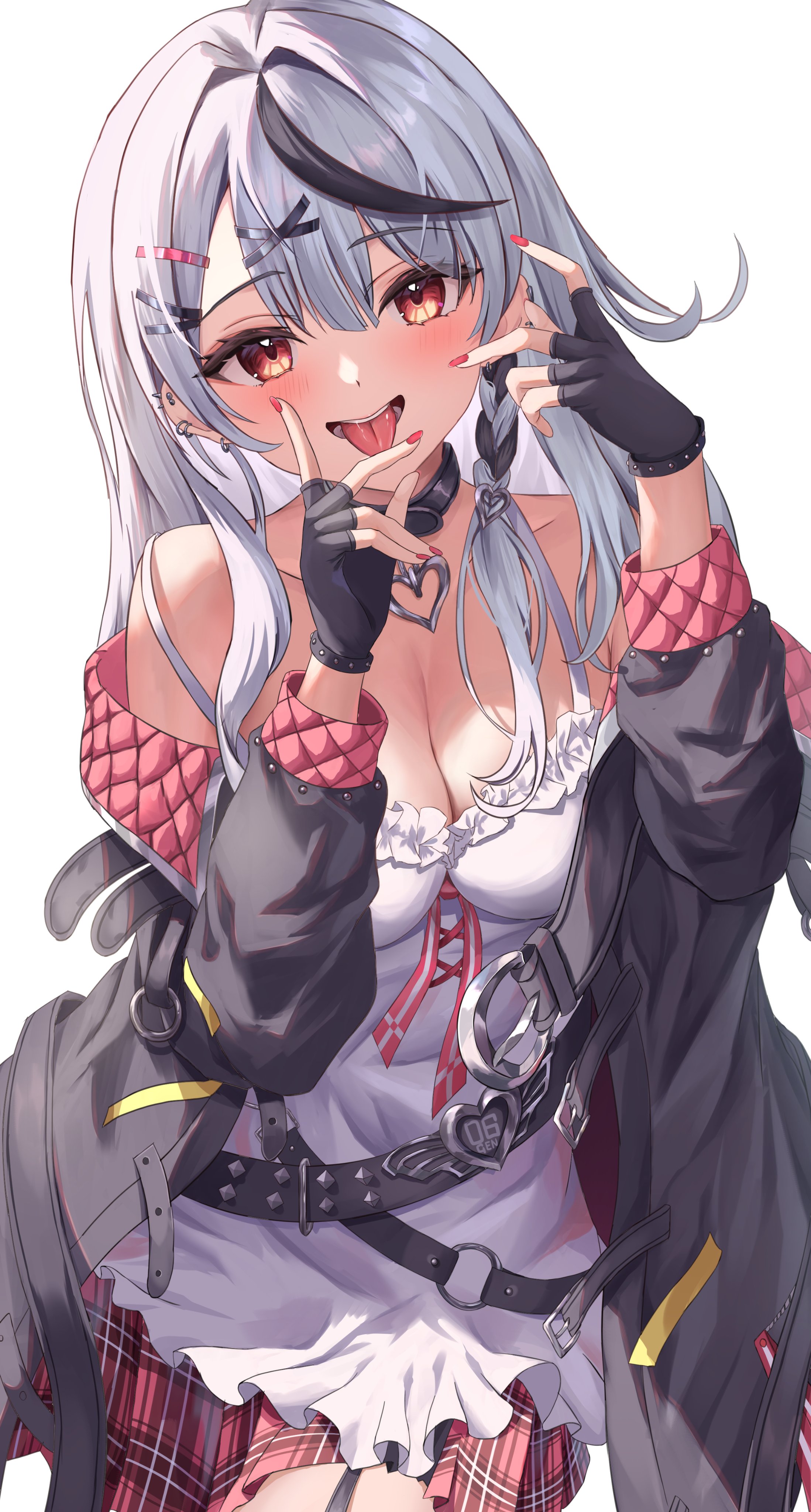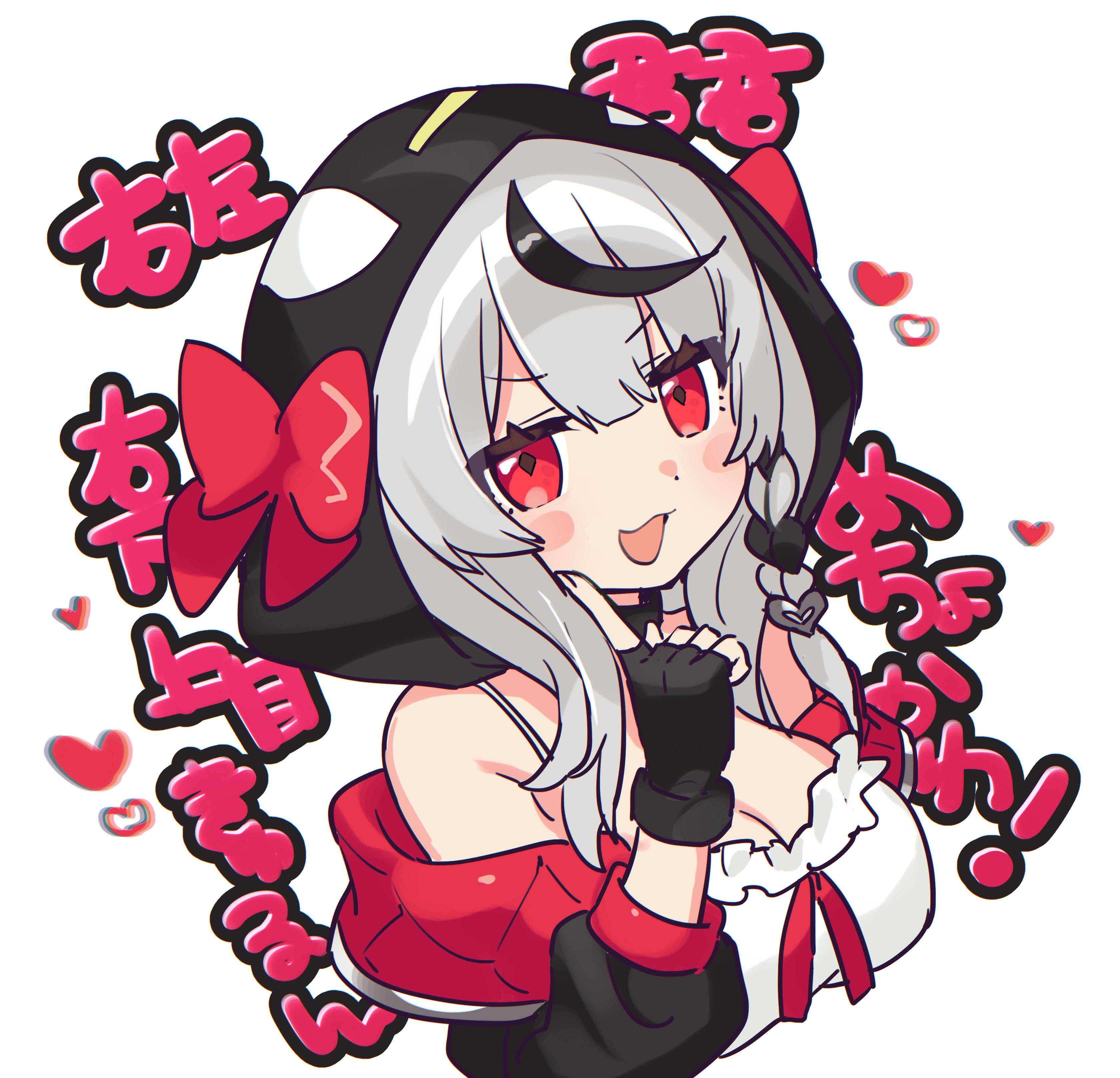 Chloe's distinctive appearance is hard to forget. With medium-length wavy hair adorned with black hairpins, red eyes, and a predominantly black hood featuring "eyes" and red and black plaid-patterned hair bows, she's a visual delight. Her ensemble is completed with black boots sporting red laces and platform soles. It's a look that perfectly encapsulates her orca-inspired persona. 🌈