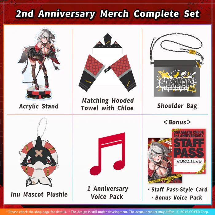 Introducing the "2nd Anniversary Merch Complete Set" that captures the essence of Sakamata Chloe's unique charm. This set includes: