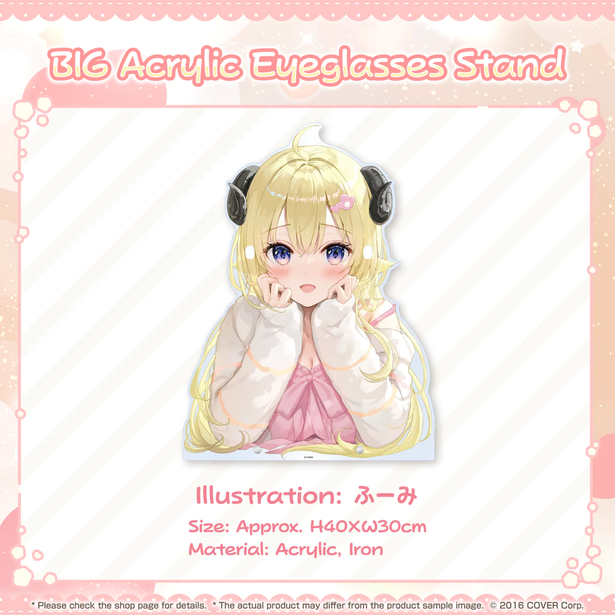 Witness Watame's adorable charm with this big acrylic eyeglasses stand featuring the cute artwork by ふーみ. It's approximately H40×W30cm and made of durable acrylic and iron.