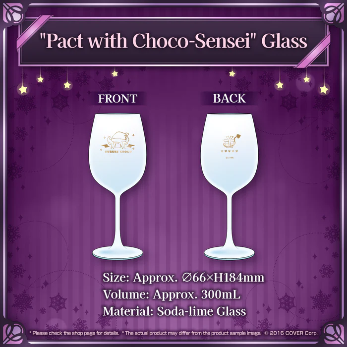 "Pact with Choco-Sensei" Glass: Quench your thirst in style with this glass adorned with an adorable illustration. With a volume of approximately 300mL, it's perfect for any beverage. Crafted from soda-lime glass, it's both elegant and functional.