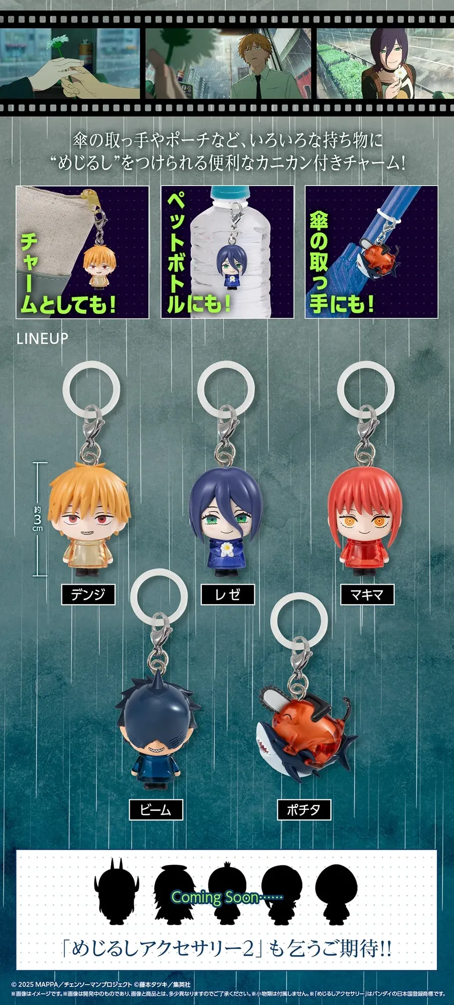Introducing the "Marking Accessory 1" from the theatrical film "Chainsaw Man: Reze Arc". This handy charm with a lobster clasp can be used to mark various items such as umbrella handles and pens!