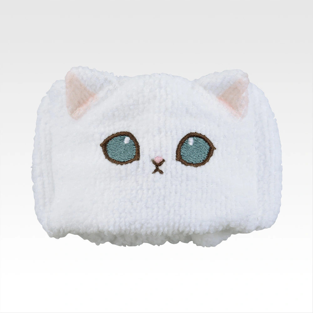 This plush cat is soft and fluffy, relaxing in pajamas.
